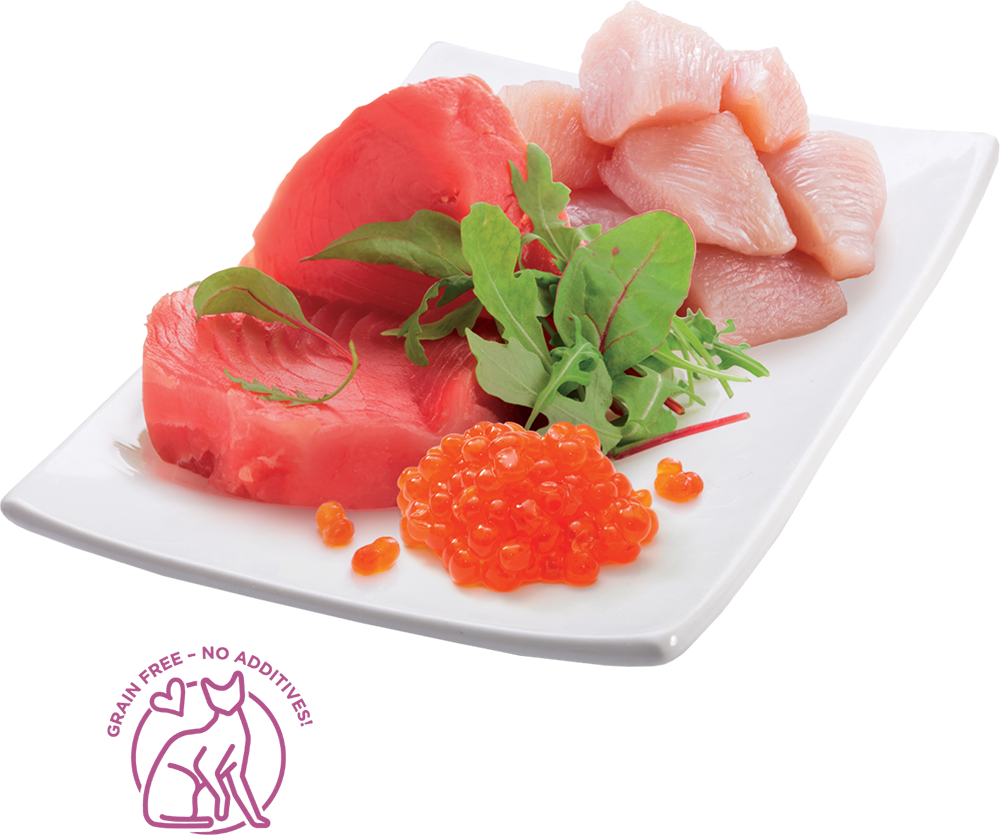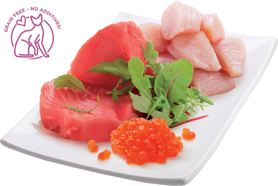 Our slogan, ‘real food for real cats’ refers to the high quality fish and meat included in our recipes, which helps create the perfect taste and texture your cats will love!